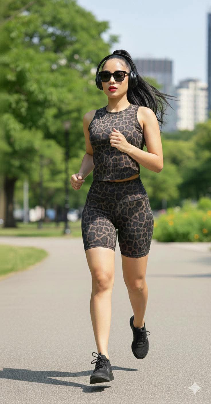 Unleash your confidence in our Untamed Sculpt Set, designed to sculpt, support, and move with you. This bold leopard-print set features a built-in bra for effortless support and high-waisted biker shorts that snatch the waist while enhancing your curves.